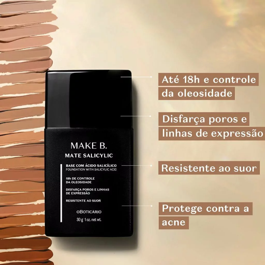 A Base Líquida Mate Salicylic faz parte da linha Make B., pioneira quando o assunto é dermomake, para uma uma maquiagem que trata a pele. Além de destacar a sua beleza, entrega ativos de skincare de alta performance com sofisticação.