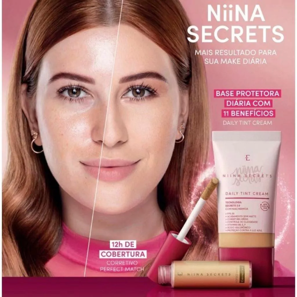 A Base Líquida Daily Tint Cream Niina Secrets é o tratamento diário 24h na primeira etapa da make que vai deixar a sua pele radiante! Com 11 benefícios em 1 só produto, é uma base protetora multifuncional indispensável para levar naquele kit maquiagem que sempre te acompanha: