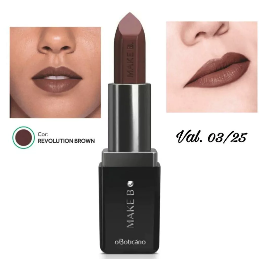 Disponível em várias cores, o batom marrom possui textura macia com efeito mate que não resseca ou craquela os lábios. Além disso, sua fórmula mantém os lábios protegidos.