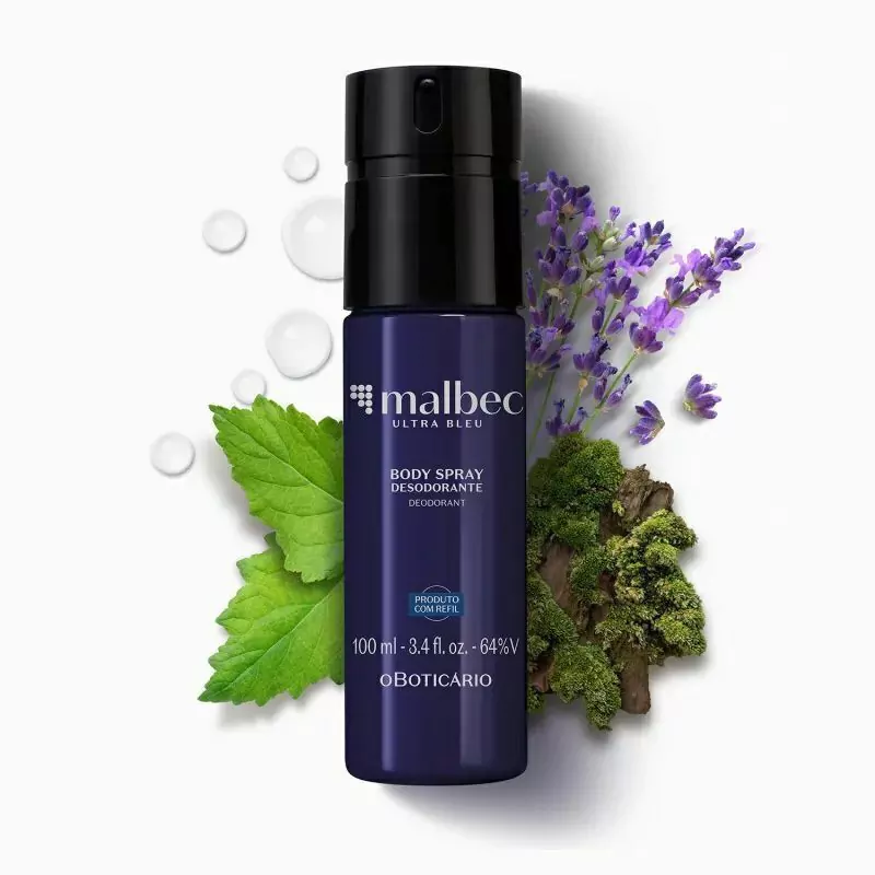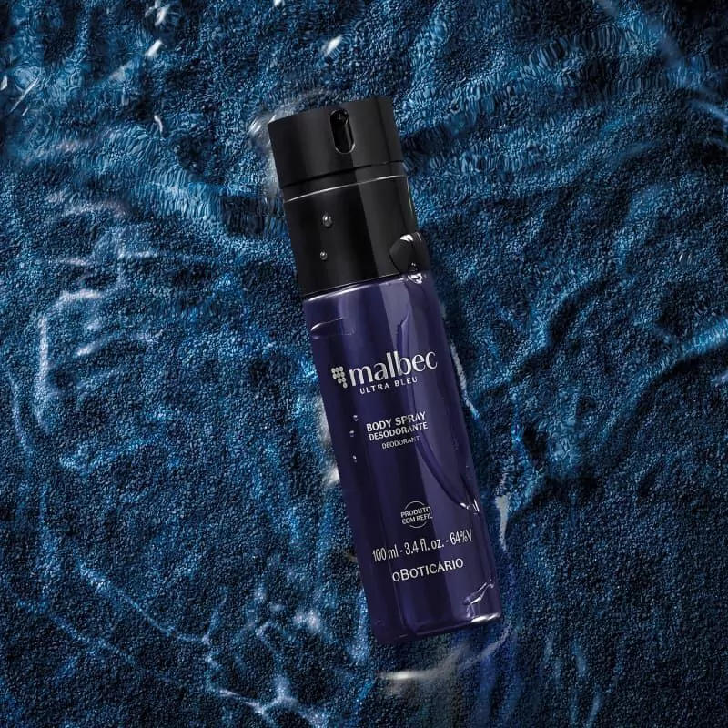O Body Spray Desodorante Malbec Ultra Bleu garante proteção e cuidado enquanto você cuida do seu dia a dia, com a fragrância que apresenta mais refrescância, mais madeiras e o toque novo de intensidade do novo Malbec Bleu.
