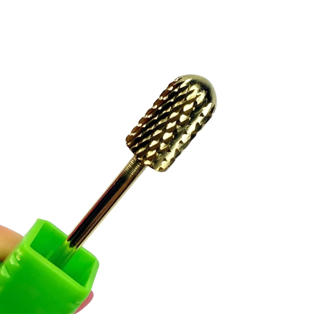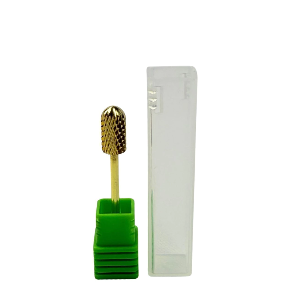 A Broca Tungstênio Barrel Ball Dourada é perfeita para profissionais que buscam precisão e segurança no trabalho com unhas em gel, acrílico e fibra.