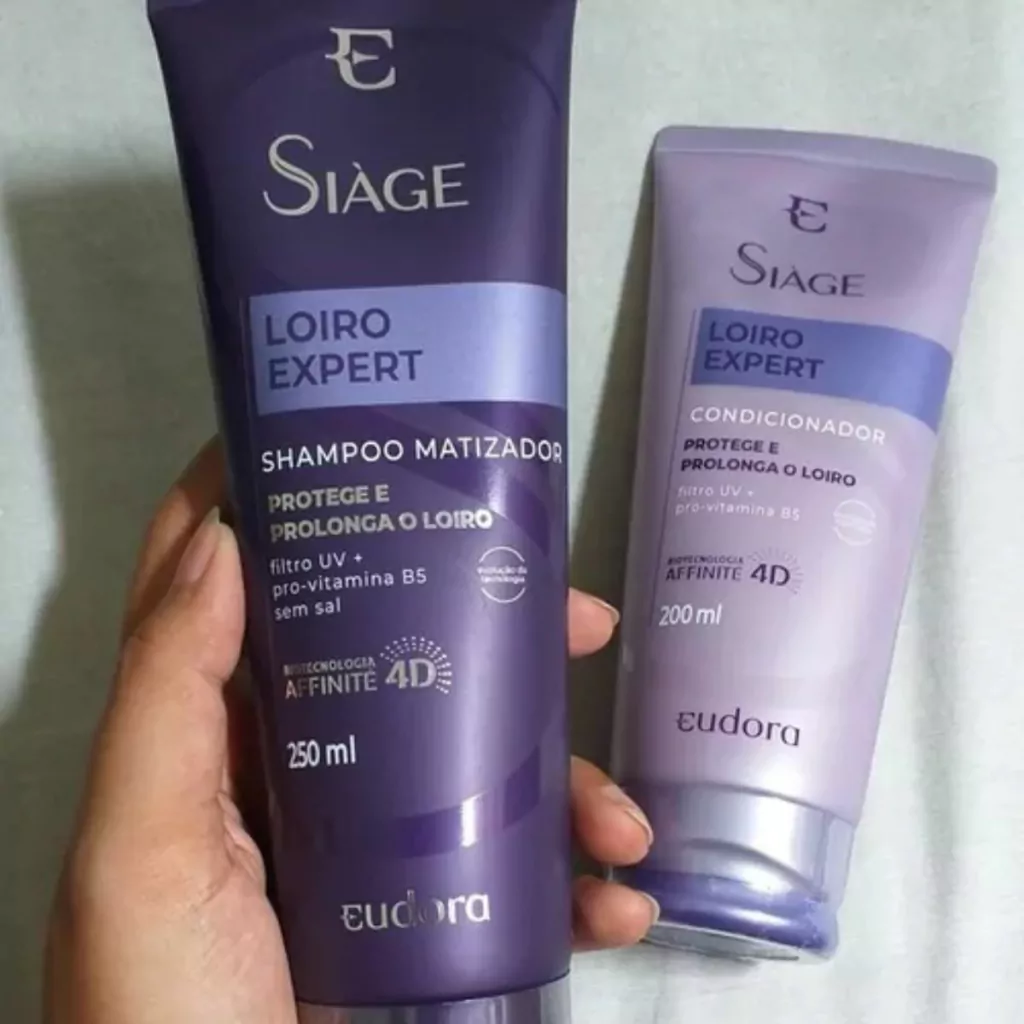 O Combo Siàge Loiro Expert traz dois itens básicos para preparar e cuidar dos fios. A linha destes dois itens foi desenvolvida especialmente para tratar cabelos descoloridos. Sua fórmula é ideal para cabelos com luzes, mechas ou tingidos, unindo seu alto poder antioxidante a hidratação intensa, preserva a cor de cada um de seus fios e garante brilho intenso por muito mais tempo.