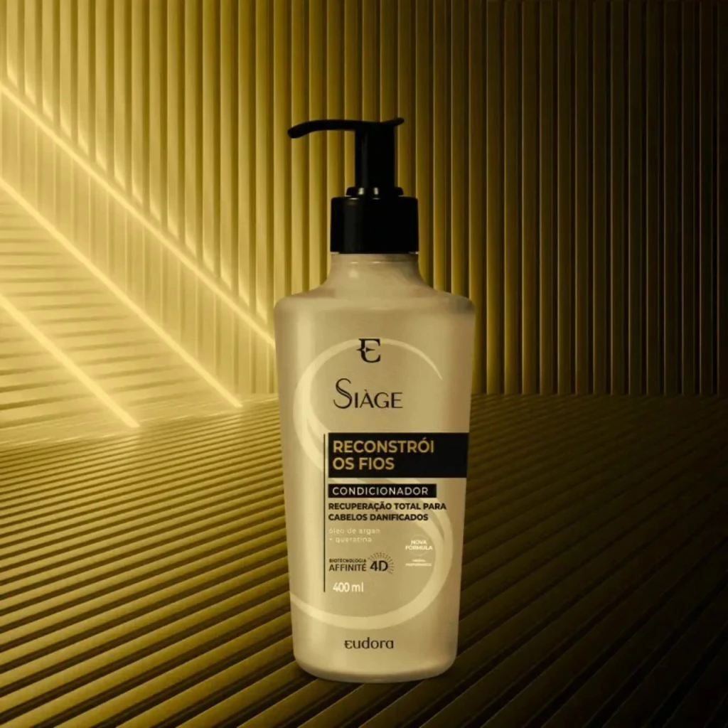 O Condicionador Reconstrói Os Fios com efeito ultra hidratante, desembaraça os fios imediatamente e garante cabelos mais macios e sedosos diariamente, além de recuperar totalmente os danos causados pelas agressões externas. SOBRE A LINHA Eudora Siàge uniu a força da natureza ao poder da ciência e criou a exclusiva biotecnologia Affinité 4D . Com inteligência detectora de danos, trata os fios até a camada mais profunda, mesmo após o enxágue.