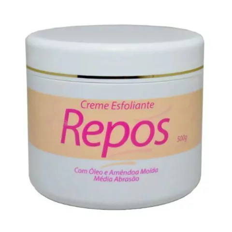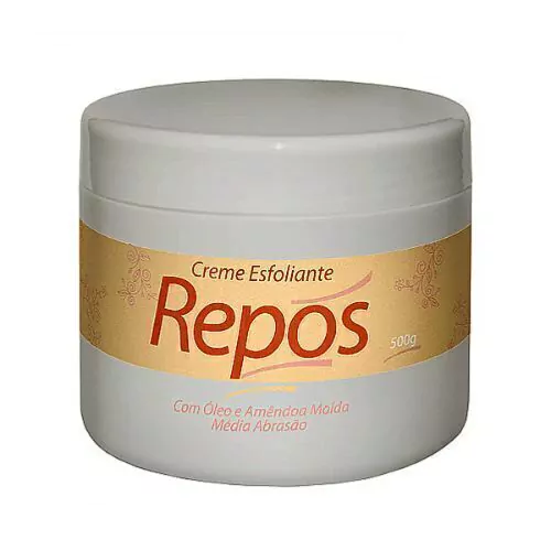 O creme esfoliante Repos contém em sua formulação amêndoas moídas que além de esfoliar a pele, regenera e da macies.