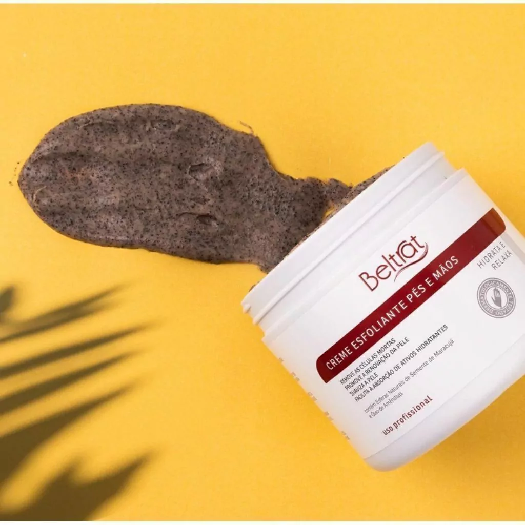 O Creme esfoliante com semente de Maracujá pés e mão Beltrat atua removendo as células mortas, renovando a pele e aumentando a absorção de ativos.