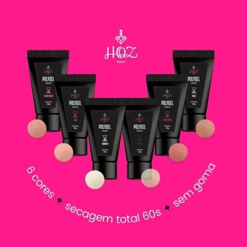 Com 60s de secagem total e a possibilidade de estruturar 5 dedos antes de levar pra cabine, o Polygel HQZ Nails cumpre a otimização de tempo que promete.