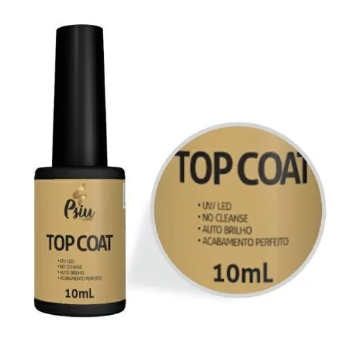 Kit 2 Top Coat Unha Gel Auto Brilho 10ml - Psiu