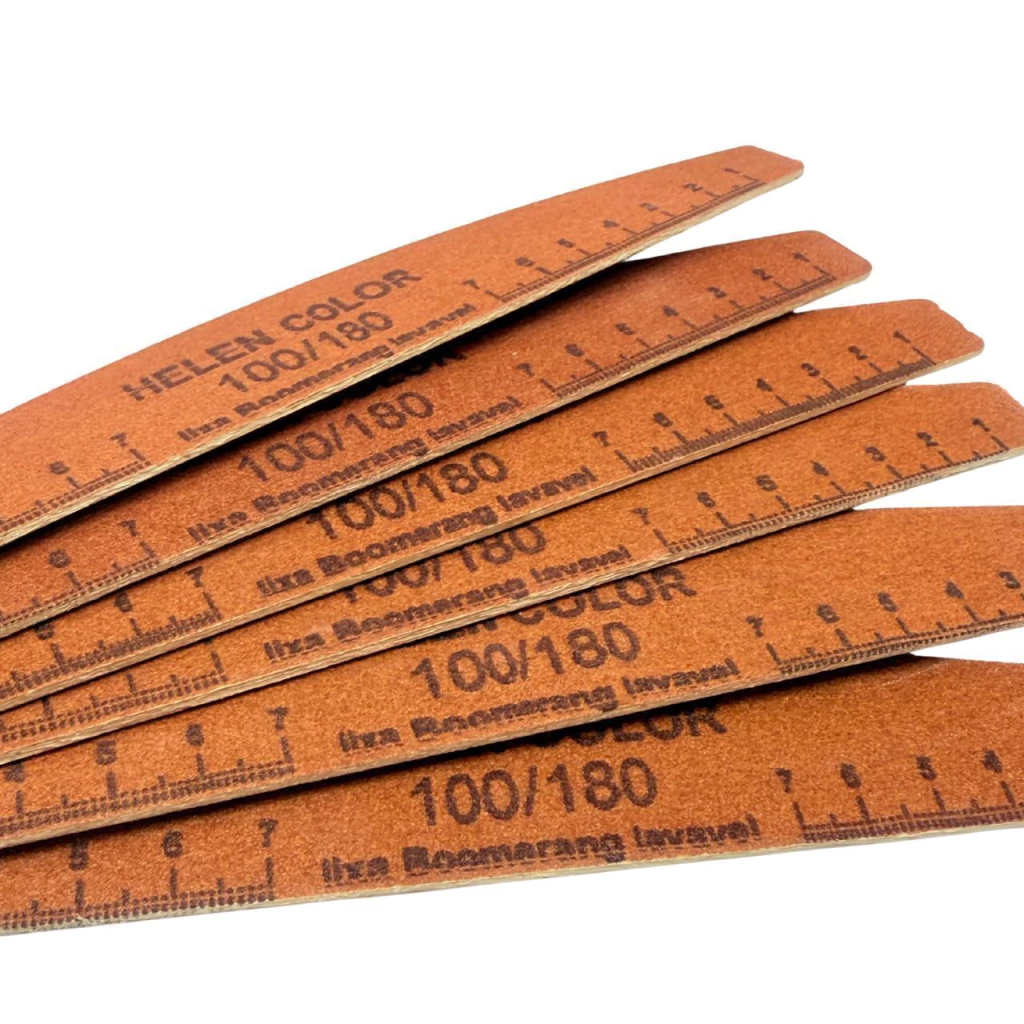 Lixa fina Helen Color 100/180 marrom, lavável e resistente, ideal para lixamento preciso de unhas naturais e artificiais.