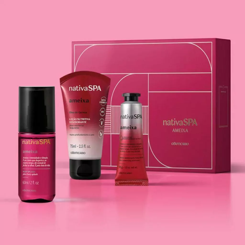 O Mini Kit Presente Nativa Spa Ameixa traz 3 itens de autocuidado com a fragrância deliciosa da Ameixa e ainda conta com uma caixa de presente que deixa tudo mais especial. Os produtos em miniatura cabem na bolsa, mochila e nécessaire, sendo ideais para manter o momento de carinho e autocuidado. Confira só o que vem: