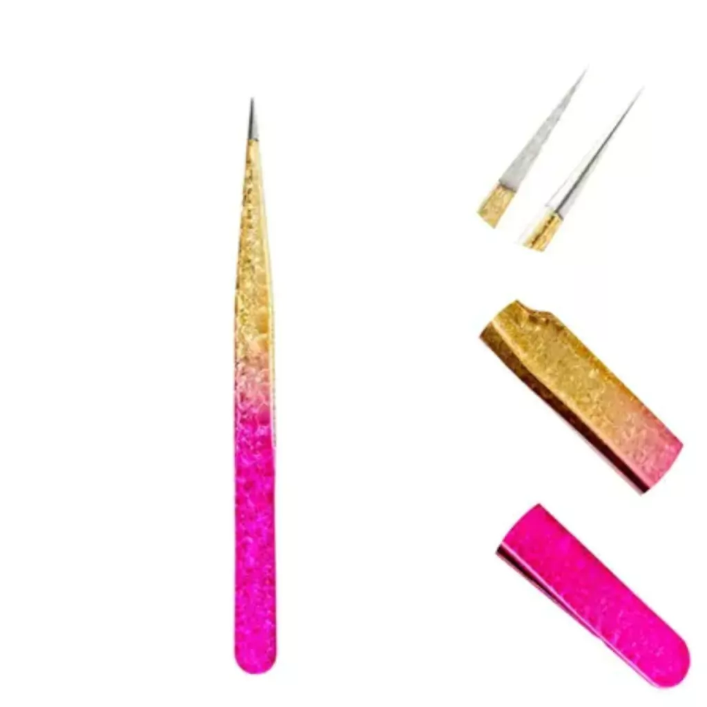 Kit Pinça Semi Curva e Pinça Reta Rosa e Dourado é perfeita para ser utilizada para aplicação de cílios.
