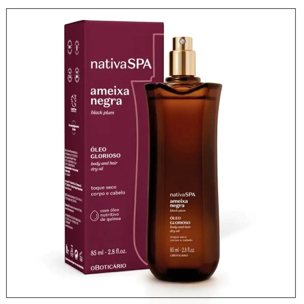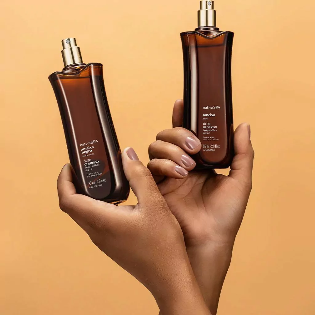 O Óleo Multifuncional Glorioso Nativa SPA ameixa negra é um produto versátil que vai envolver a sua rotina com um tratamento poderoso aliado a uma explosão de fragrância. Indispensável para o seu momento de autocuidado, sua fórmula incrível em uma textura de óleo seco deixa a pele iluminada e nutrida enquanto aumenta o brilho do cabelo, conferindo maciez e redução da quebra.