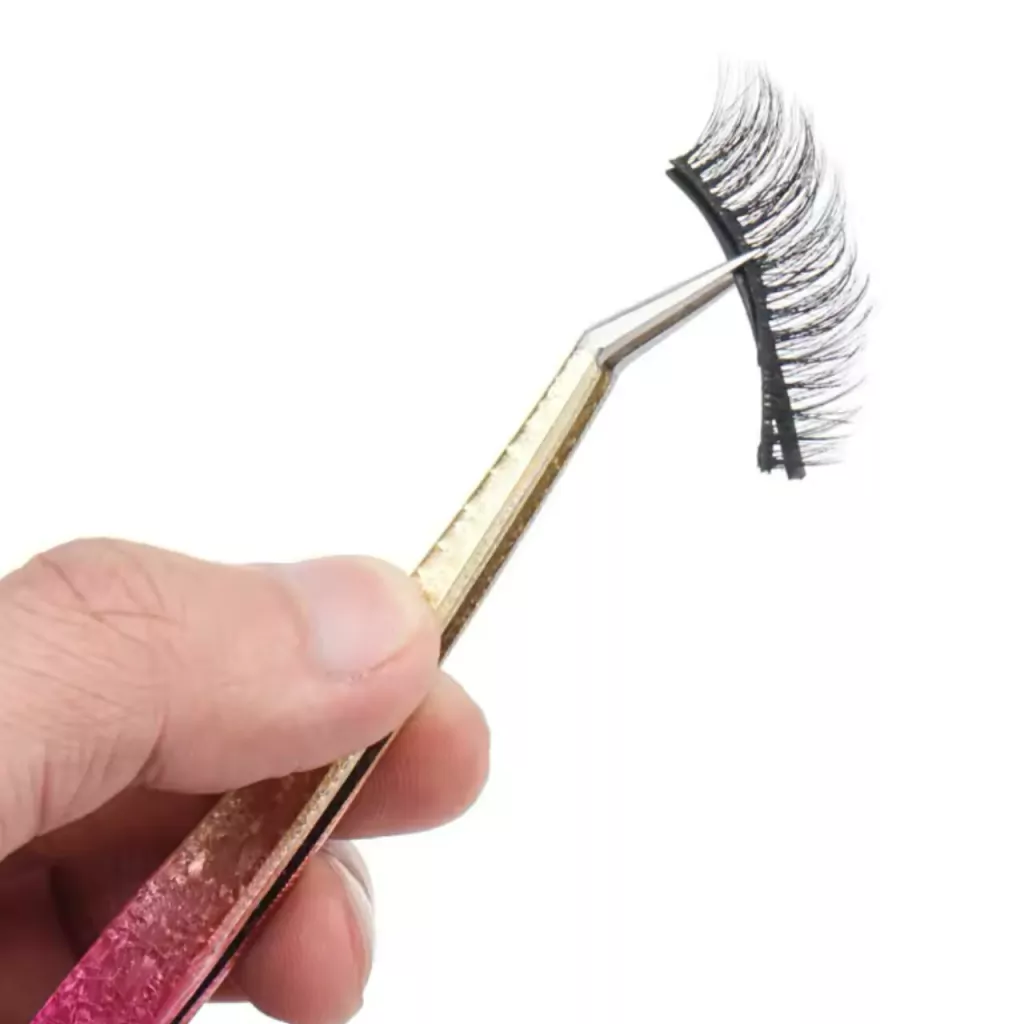 A Pinça Semi Curva Rosa e Dourado é perfeita para ser utilizada para aplicação de cílios.