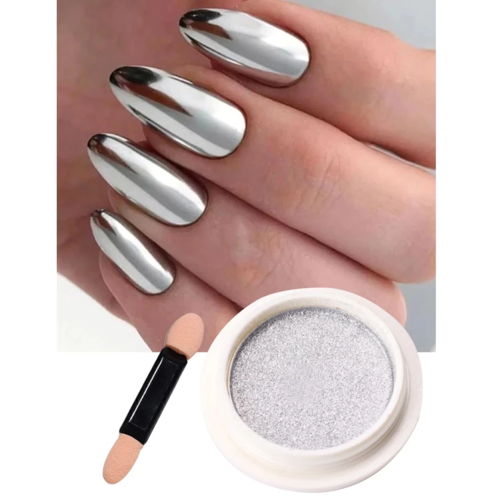 Pó Cromado Prata Helen Color Efeito Espelhado Unhas Gel
